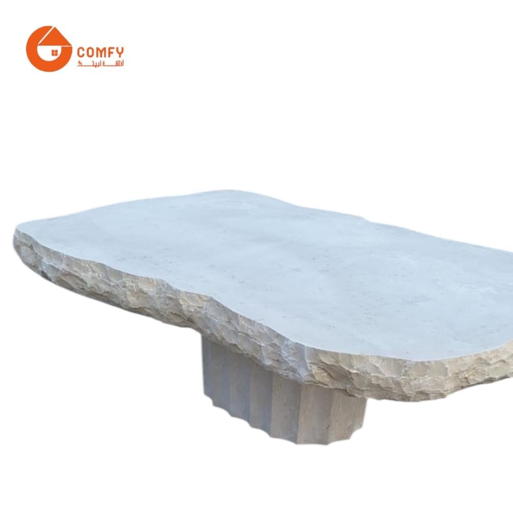 طاولة حجر طبيعي منحوتة يدويا بتصميم فني يعكس جمال الطبيعة وأصالتها. تتميز بأطراف منحوتة بعناية وقاعدة متينة، لتكون قطعة فريدة تضيف لمسة راقية لأي مساحة، مناسبة في الأثاث المنزلي والأثاث المكتبي للاستخدام كطاولة قهوة، عرض ديكور، أو قطعة فنية مستقلة.