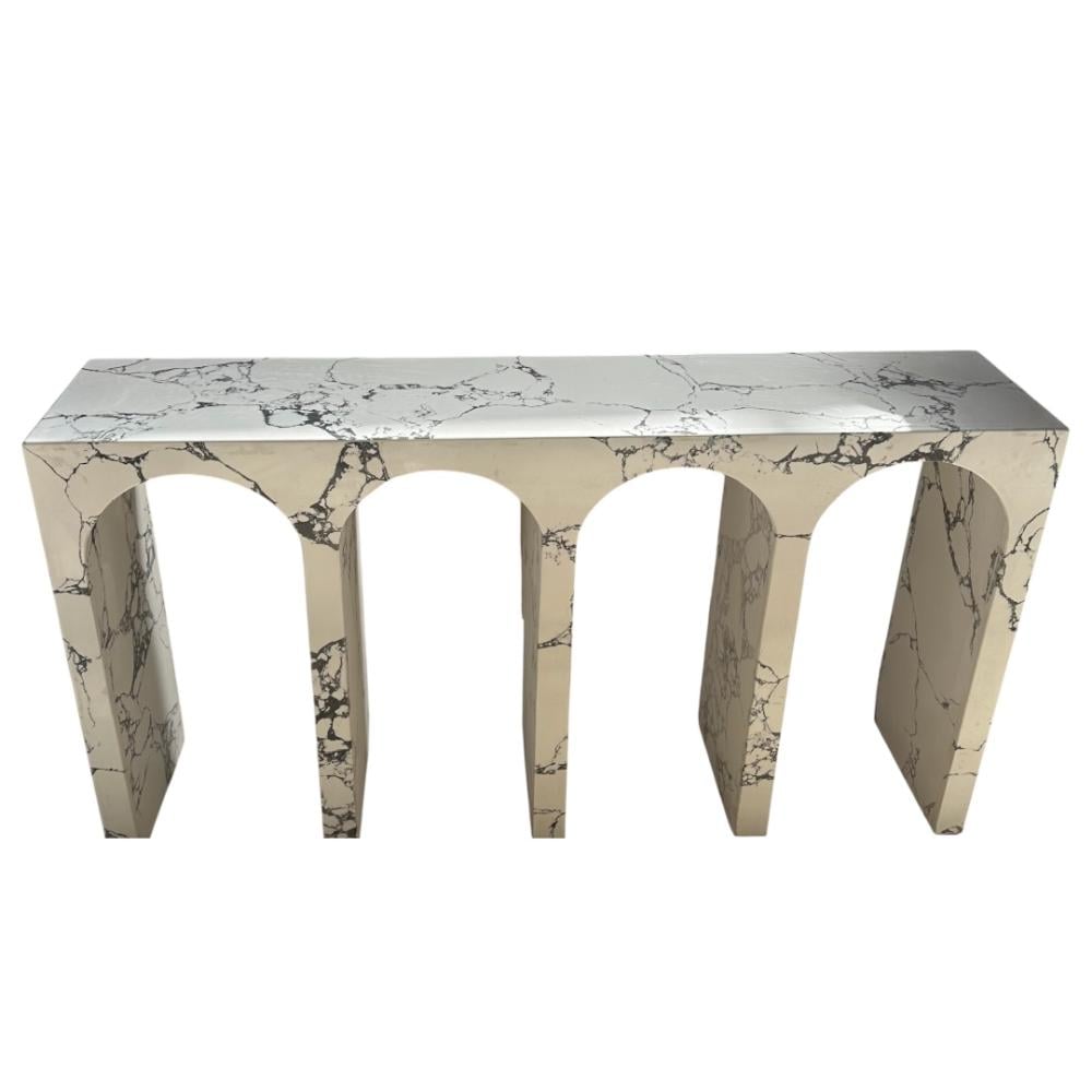 أضف لمسة أناقة كلاسيكية وعصرية مع هذا الكونسول المصمم بأسلوب فيكتوري الراقي، مصنوع من الرخام الصناعي الأبيض مع عروق سوداء تضفي تبايناً جذاباً يبرز جمال التصميم. مثالي لتزيين المدخل أو الصالة مع لمسة فخامة واضحة.